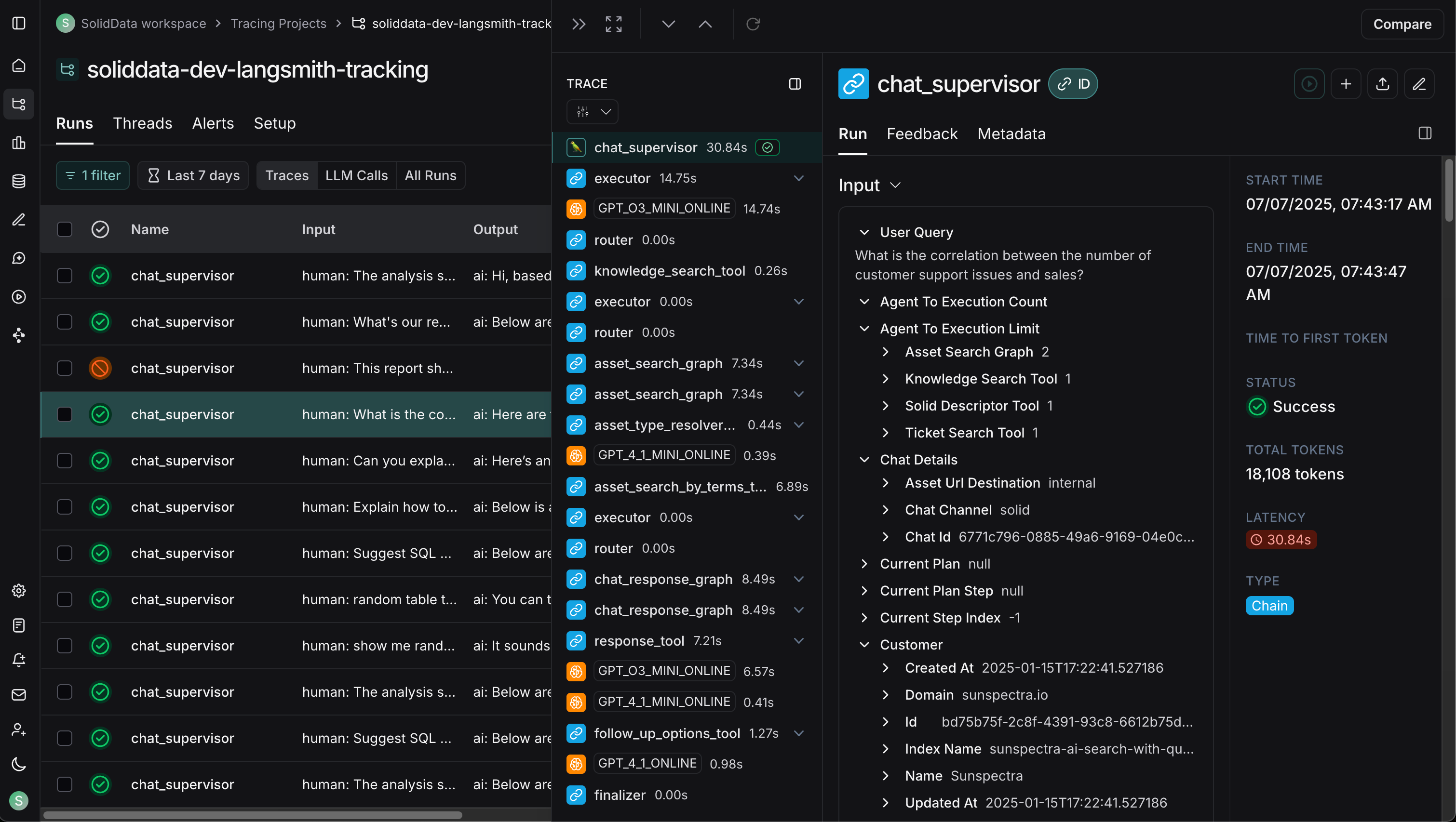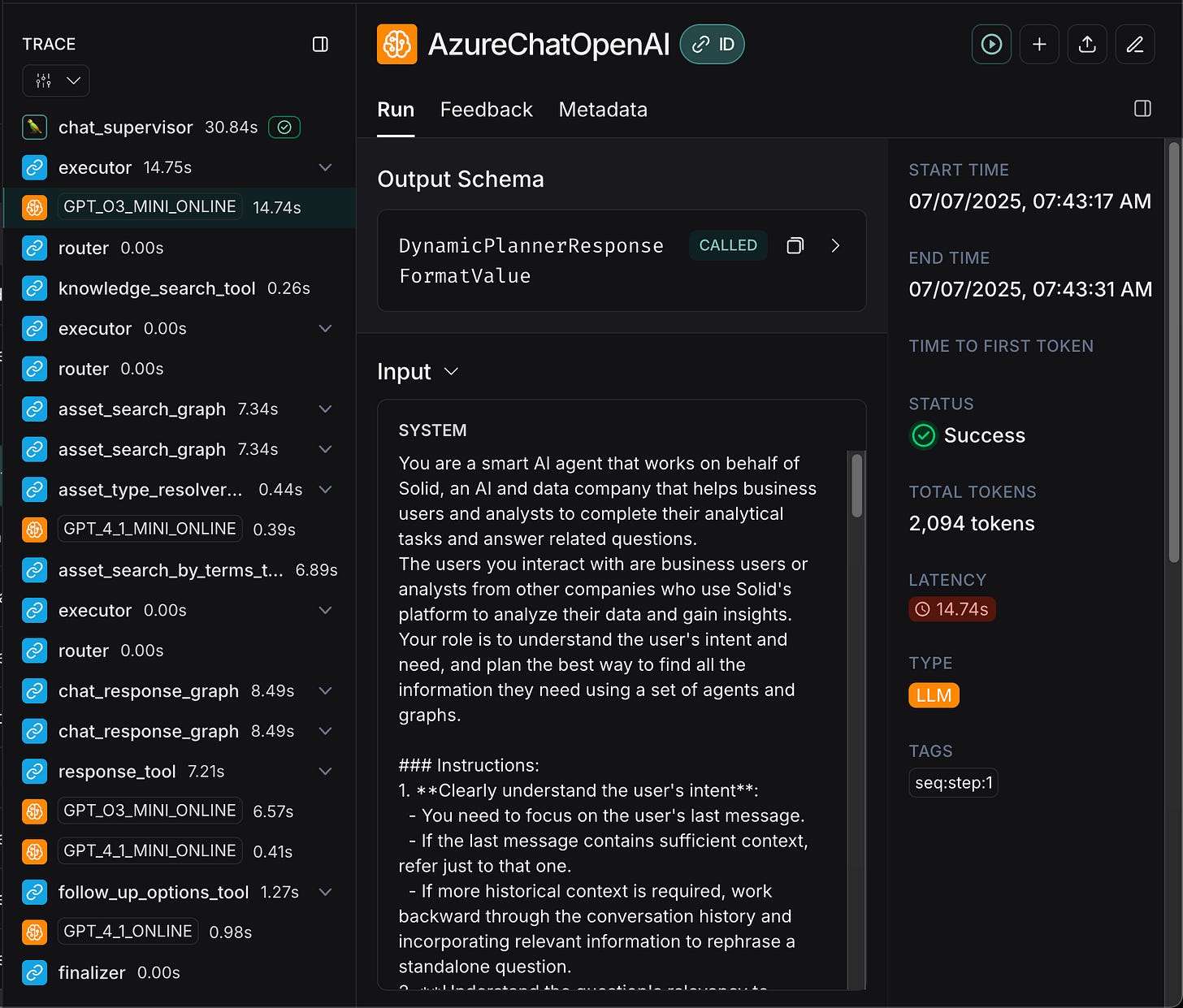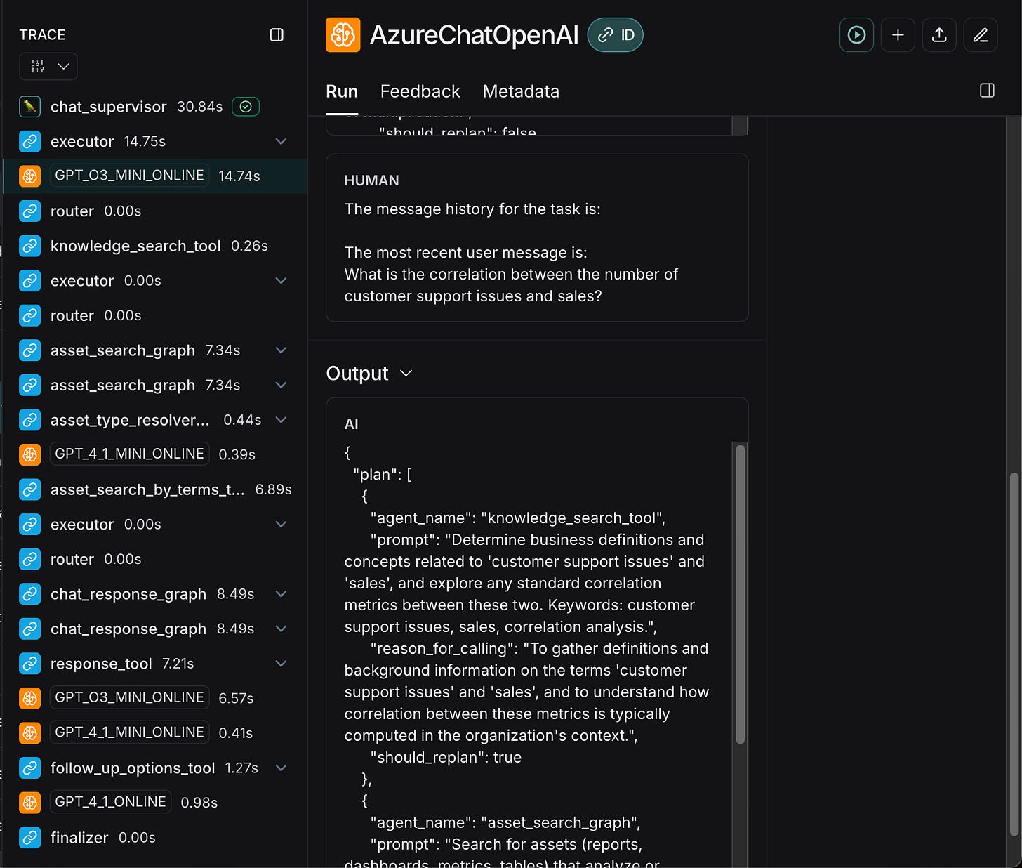 As you can see above, we can observe each and every step, of every single interaction. As you may recall from our overview post, there’s a supervisor, which comes up with a plan of action, and a set of tools it uses. It can revise its plan as it progresses, and call the tools again and again.