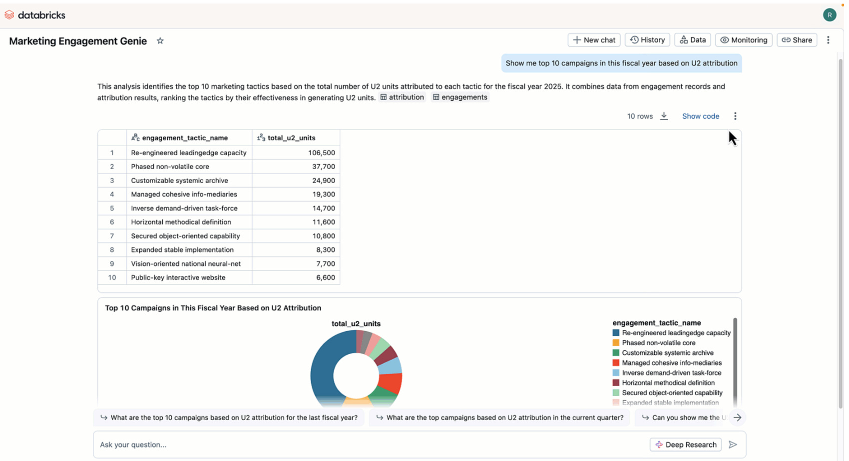 On the other side, we have the "Conversational Insight" paradigm. This is the charismatic storyteller who can effortlessly weave narratives from complex data. The semantic layer is a critical part of this AI engine - the output of your AI agent is only as good as the documentation you feed it. Platforms like Snowflake's Cortex Analyst and Databricks Genie are the stars of this show. They leverage the power of Large Language Models (LLMs) to provide a natural language interface for business users. The goal here is speed-to-insight. A marketing manager can simply ask, "Which campaigns had the best ROI last quarter?" and get an immediate, data-backed answer without writing a single line of SQL.