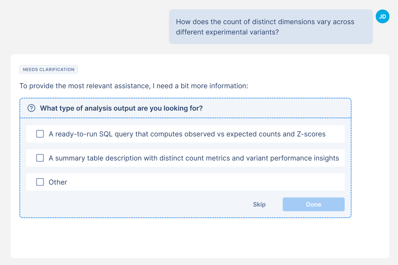 We also provide it with the full context of the analytical work that was done, and any recent work on the data engineering side. These JIRA tickets, Slack messages, etc, are very useful for the AI to understand what is going on.
